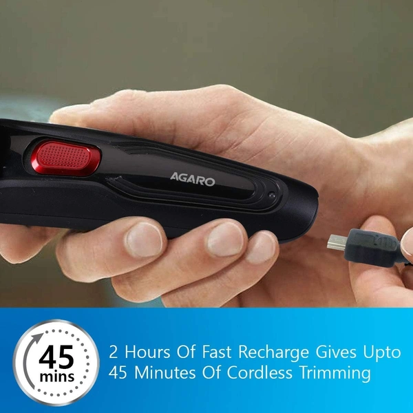 Agaro Beard Trimmer MT-7001 | 9 Length Setting | 2Hrs Fast Charging / 45 Min Usage (Black)
