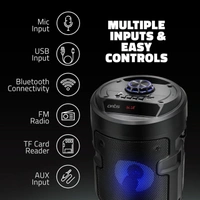 - Max USB/ TF card input: 32 GB ,Input modes: Bluetooth, USB, FM Radio, TF Card Reader, Aux port, MIC ,10 Meters Operating Range