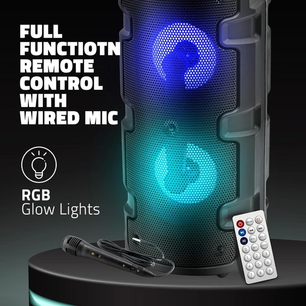 Artis MS301 Wireless Bluetooth Portable Party Speaker with RGB Glow Lights, Wired Mic, Remote Control, FM Radio & Aux in/USB/TF Card Reader Input | 20W RMS Output (Black)