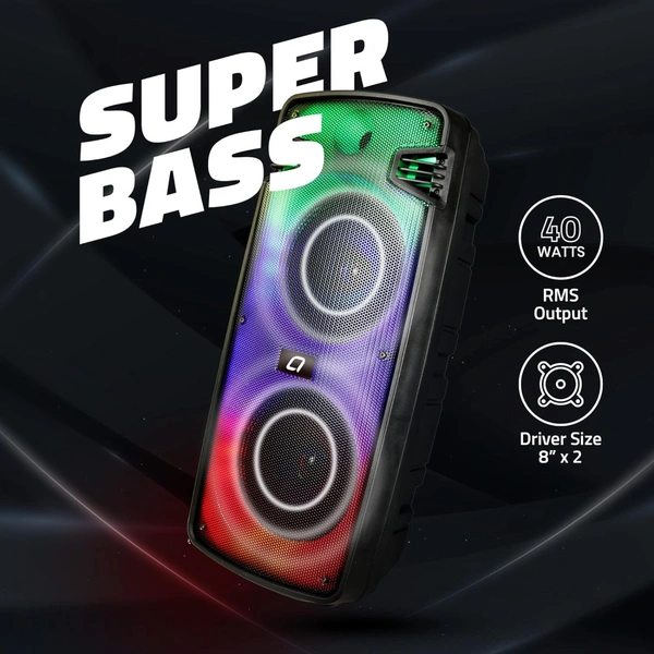 - It delivers 40W RMS Powerful Bass Output