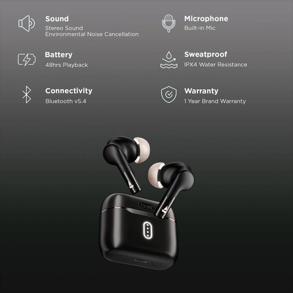 Boat Airdopes 148 Gen 2 TWS Earbuds With Environmental Noise Cancellation | 48H Battery | IPX4 Water Resistant | 4Mics ENX Tech Beast Mode | ASAP Charge | Bluetooth Earbuds | TWS Ear Buds Wireless Earphones With Mic (BLACK)