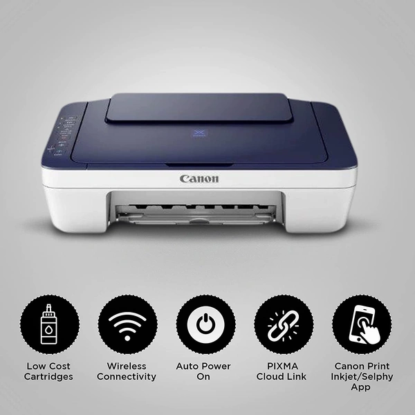 Canon PIXMA E477 All-in-One Wireless Ink Efficient Color Printer (White/Blue)