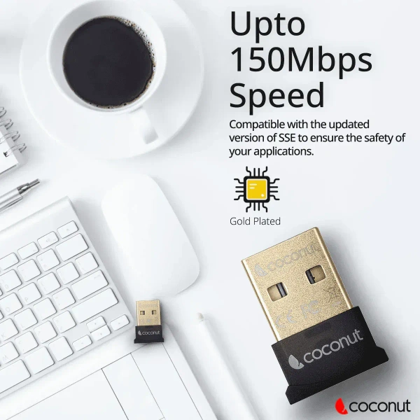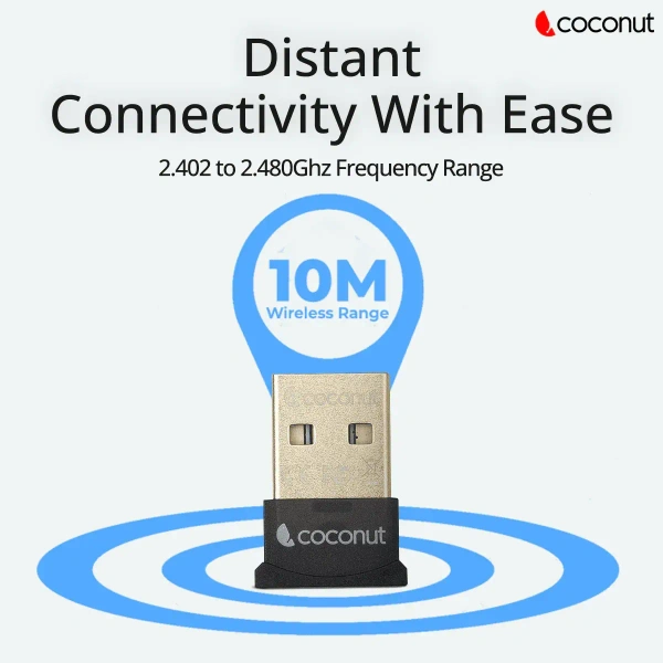 Coconut WA03 Bluetooth Wireless Adapter, Bluetooth ver5.0, Gold Plated (Black)