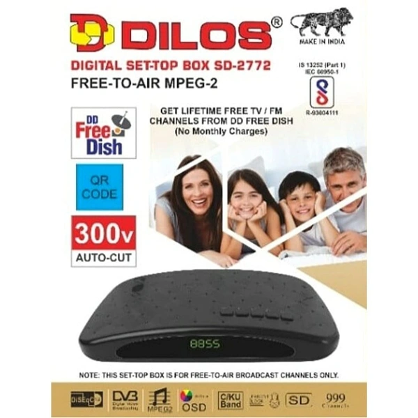 DILOS HR-6SE Digital Set-Top Box SD-2772 | Free-to-Air MPEG-2 | Get Lifetime Free TV / FM 999 Channels From DD Free Dish (No Monthly Charges) (Black)