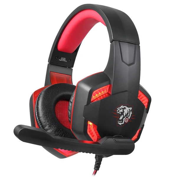enter GANGSTA Wired Gaming Headphone with 40mm Driver, Adjustable Headband with LED Lights and Passive Noise Cancellation with Free Y Splitter ( Black & Red)