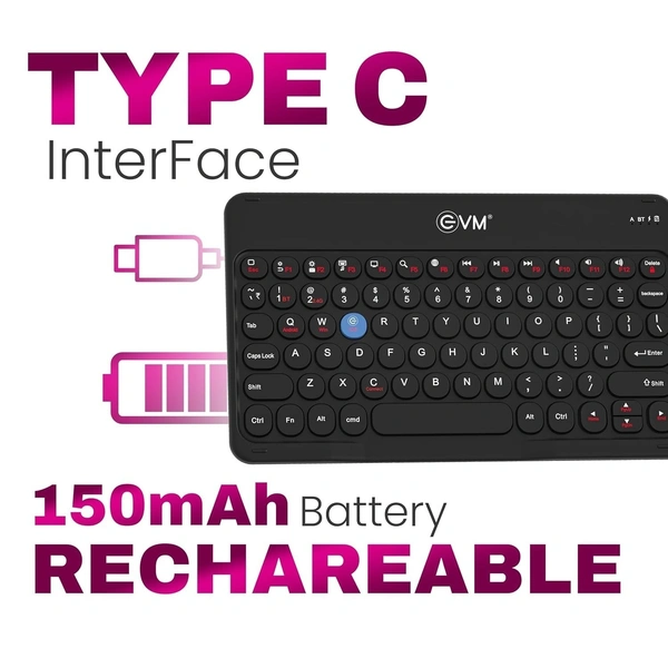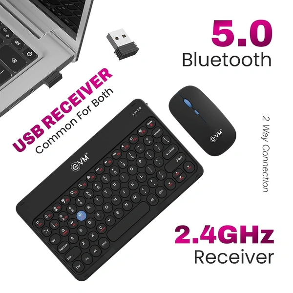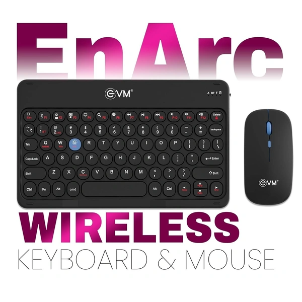 EVM EnArc Wireless Keyboard and Mouse Combo | Rechargeable Battery | Bluetooth 5.0 + 2.4G Slim & Portable | Silent Click (BLACK)