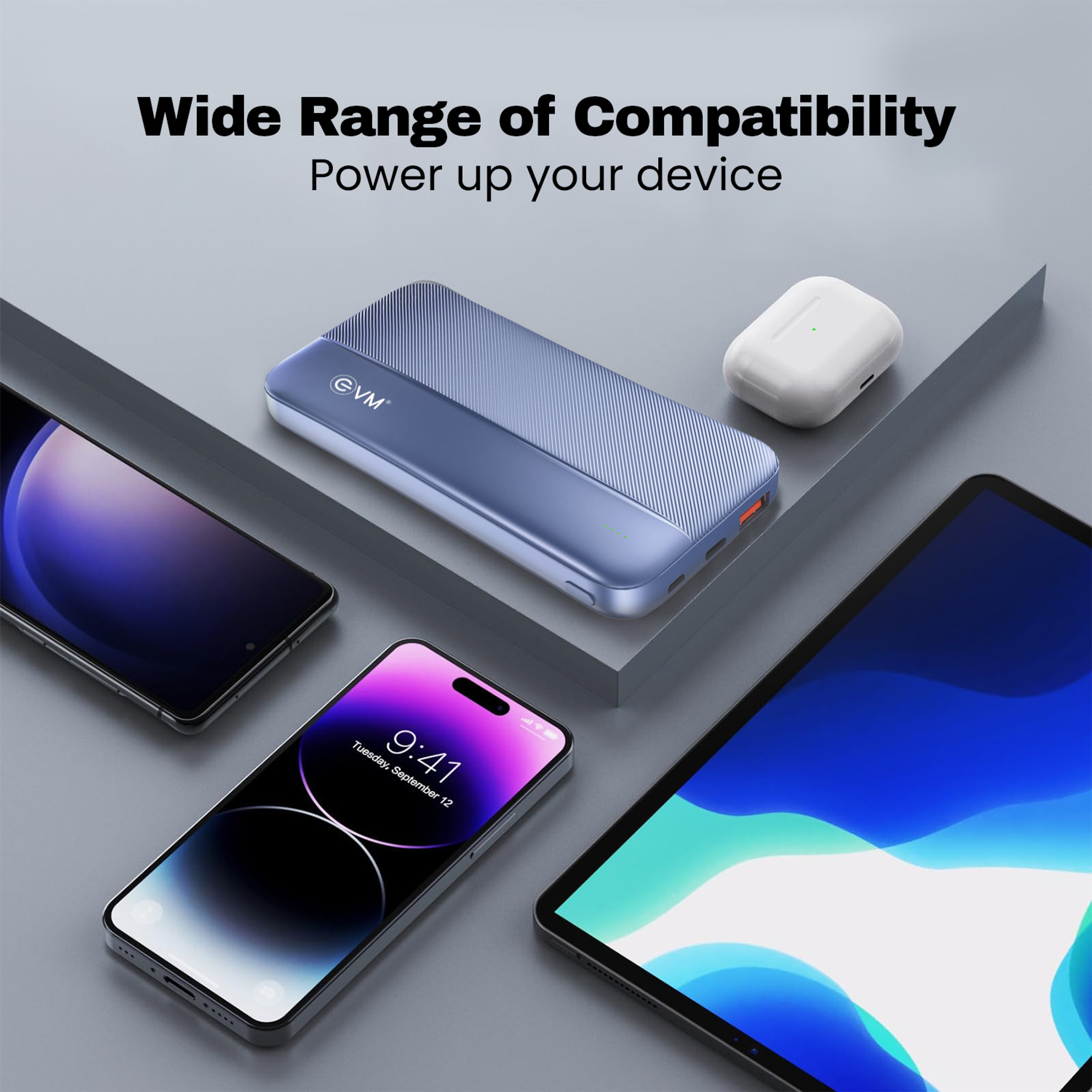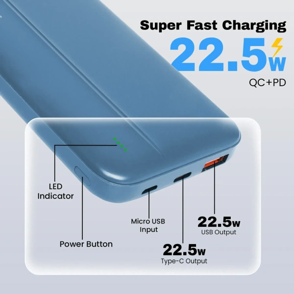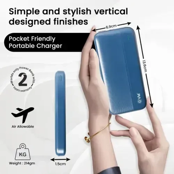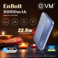 EVM EnBolt 10000mAh Power Bank | 22.5W QC+PD Fast Charging | Dual Output & Dual Input | Type-C Charging | LED Indicator (BLUE)