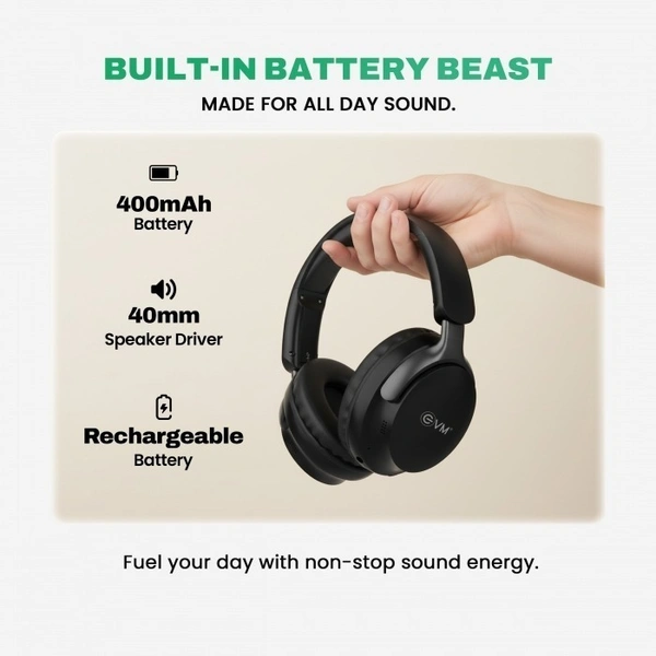 Evm EnSonic Wireless Headphone With Mic (EVM-WHF-01) 40Hrs Playback Time (BLACK)