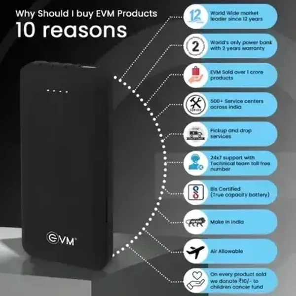 EVM 10000mAh Enjoy Power Bank - 12W Fast Charging - Portable External Battery Pack with LED Indicator (EVM-P0405)