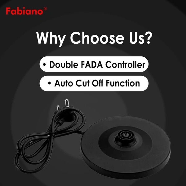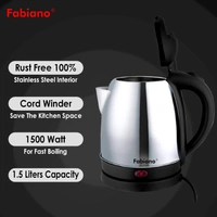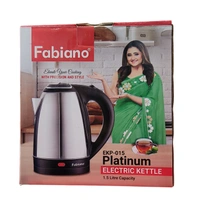 | Other Features : | FAB-E-15 electric kettle: This kettle boils water in just 2-3 minutes. Conveniently prepare hot tea, delicious cocoa, or instant soup in short time, Stainless Steel Brush Finish Body & Quick Heating with Auto Cut Off Function, Single Touch Lid- Now, close and lock the lid with only one touch, Power -1500 Watt & Capacity-1.5 L |