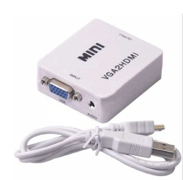Honeycom Mini VGA to HDMI Converter with Audio VGA2HDMI 1080P Adapter Connector for Projector PC Laptop to HDTV (White)