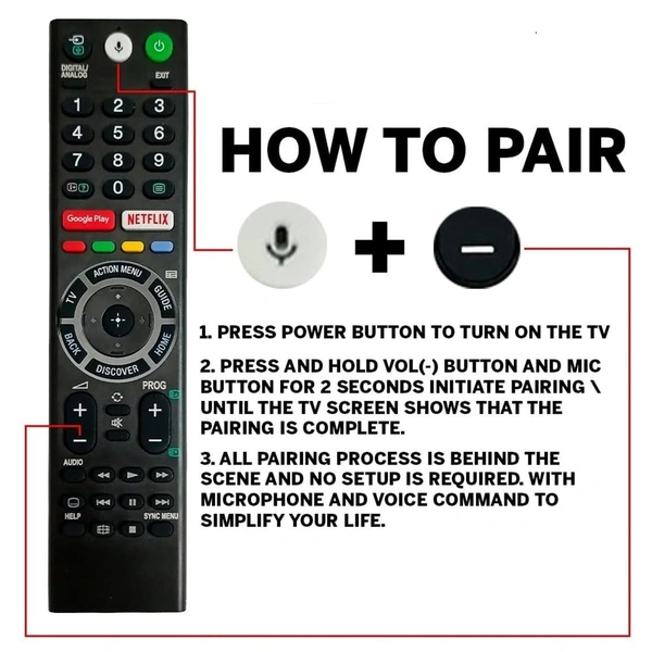HUAYU Sony Voice Common LCD/LED Remote Control RM-L1351 Compatible for Sony Android TV RM-L1351, (Black)