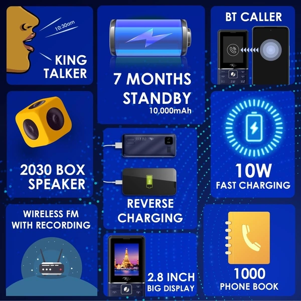 itel Power 900 Power Bank Mobile Phone,10000 mAh with 7 Months Battery Back up, 10W Charging Support and 2.8 inch Display (Deep Blue)