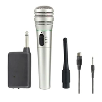 Kensonic KX308 Wireless Microphone or Wired Mic Both Options, Handheld Dynamic Mic System Set with Receiver (Silver)