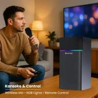 - Accessories Included: Wireless Mic, Remote.