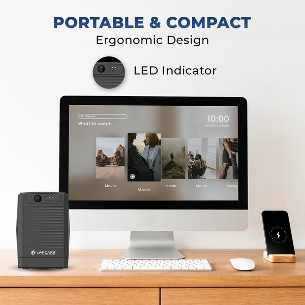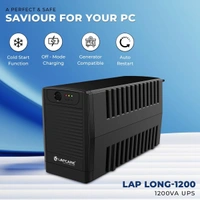 LAPCARE Lap Long 1200 Microcontroller Based UPS with Up-to 1200VA | 720W, Double Boost | Automatic Voltage Regulation | Overload Protection, Auto Restart | Generator Compatible For Office Computers (BLACK)