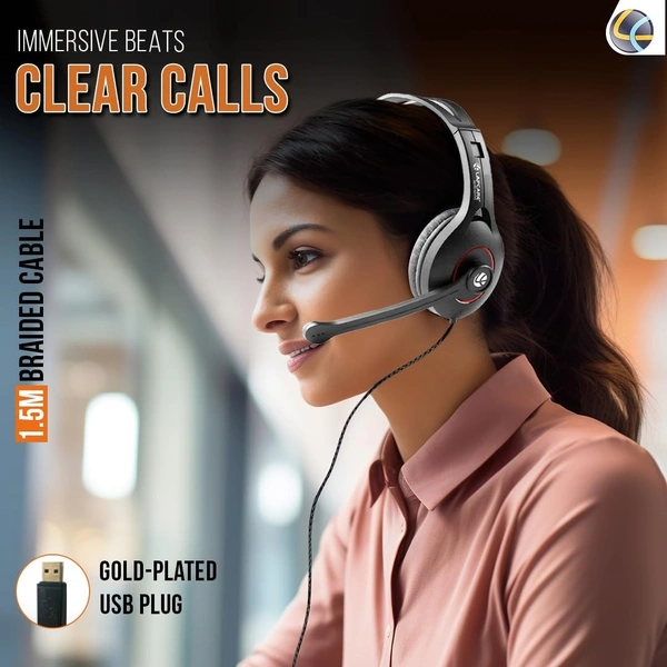 LAPCARE ROCKY LHP-207 | 20mW USB Headset with 40mm Drivers | Adjustable Microphone | Form Ear Pads | Super Anti-Violence | Long Cord (Black)