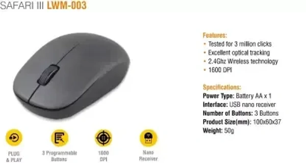 LAPCARE SAFARI III LWM-003 Wireless Optical Mouse 2.4GHz (Black)