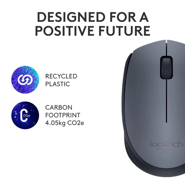 Logitech M170 Wireless Mouse, 2.4 GHz with USB Mini Receiver, Optical Tracking, 12-Months Battery Life, Ambidextrous PC/Mac/Laptop (Grey&Black)