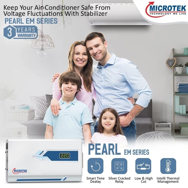 Microtek Pearl EM4130+ Automatic Voltage Stabilizer for AC up to 1.5 ton | 130V-300V (White)