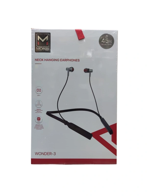 Morbi Wonder-3 Neck Hanging Earphones 45Hrs Music Time (Black)