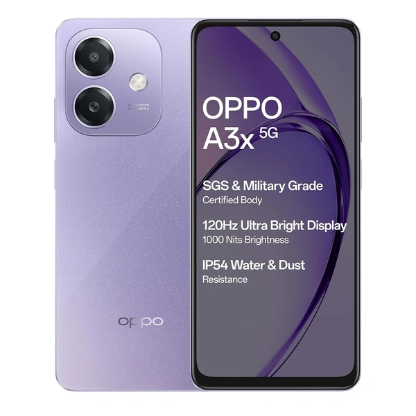 OPPO A3x 5G 4GB RAM, 128GB Storage |6.67” HD+ 120Hz Refresh Rate Screen | 45W SUPERVOOC (Starry Purple)