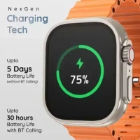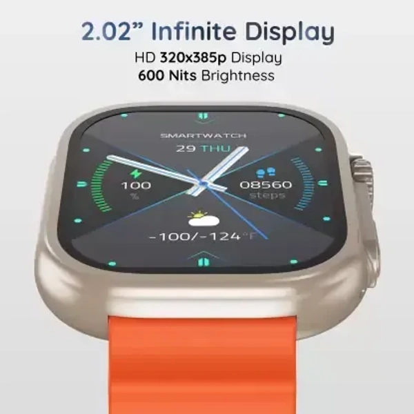Pebble Crest 2.02"Infinite Display,Rugged Design,BT Calling,Rotating Crown,Health Suite Smartwatch (Orange Strap, Free Size)