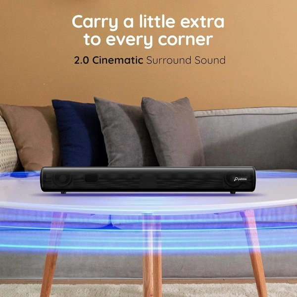 Pebble Arena 4 40W Bluetooth Soundbar with Deep Bass, 2.0 Channel Cinematic Surround Sound, Wall Mountable, Home Theater Speaker for TV (ARENA 4)