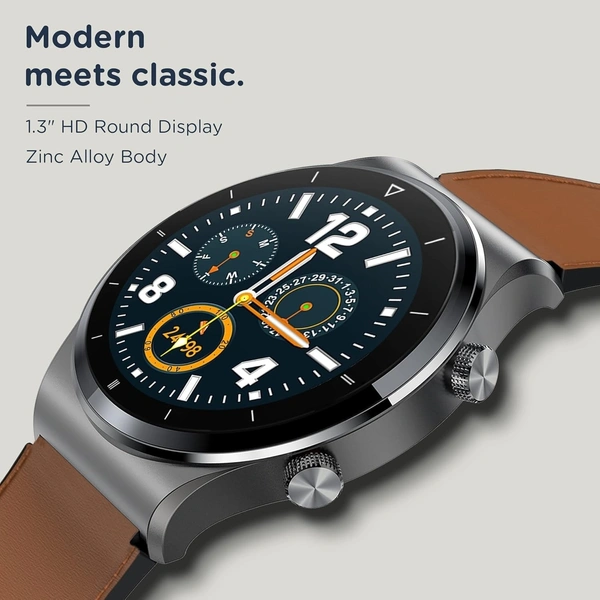 Pebble Revo Smartwatch, 1.3"(3.3cm) HD Touchscreen, Bluetooth Calling, Smart Watch with Rolling UI & Dual Button Technology, Spo2, Heart Rate & Temperature Monitoring (Brown)