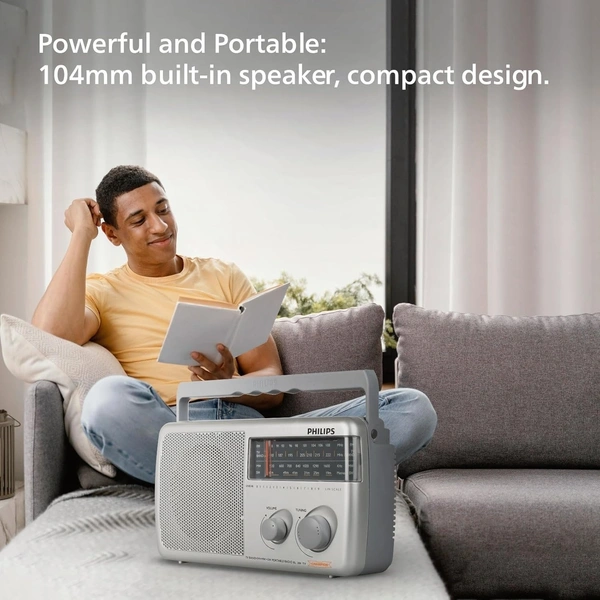 Philips Radio RL384/94 with MW/FM/SW, 500mW +1 dB RMS Sound Output, 3xR20 (4.5V DC) Battery, 4.5V External DC Socket, Without Battery/Adaptor (Grey)