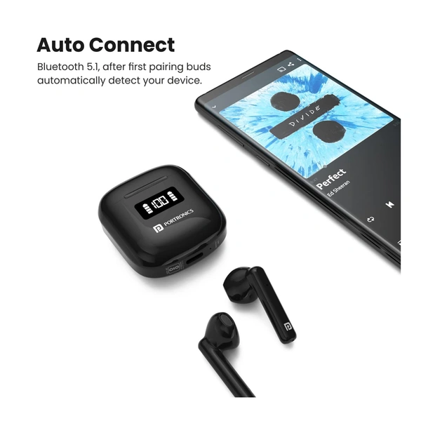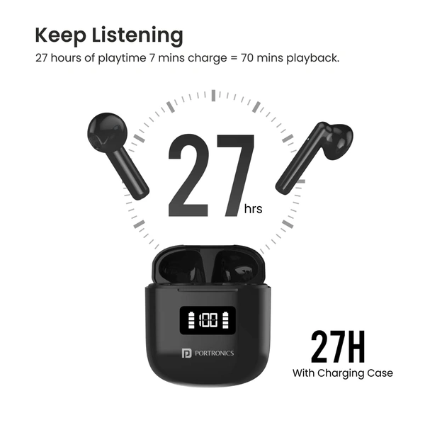 Portronics Harmonics Twins 26 TWS Earbuds with ENC, Bluetooth 5.1, 13mm Driver, 27Hrs Playtime, Digital Display, Type C Charging, Dual Mic.(Black)