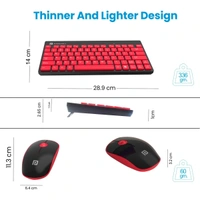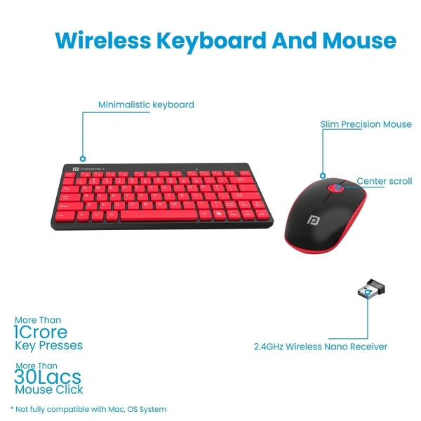 Portronics KEY2 COMBO Wireless Keyboard and Mouse Set, with 2.4 GHz USB Receiver, Silent Keystrokes, 1200 DPI Optical Tracking, Compact Design, Multimedia Keys for PC, Laptop & USB Supported Devices (Black & Red)