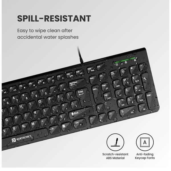 Portronics Ki-Pad 2 USB Wired Keyboard with 104 Keys, Dual Color Chicklet Keys, Rupee Symbol (₹) Key, Noiseless Typing, 1.5 m Long Cable, 10 Million Keystrokes Long Life for PC, Laptop & USB-Supported Devices (Black)