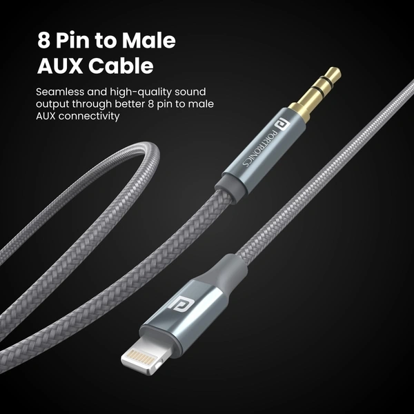 Portronics ikonnect L+ 8Pin to 3.5mm Aux Cable with 1M Length, Nylon Braided, Metal Heads, Gold Plated Connector Compatible with Cars, Mobiles, Headphones & Home Theatres(Black)