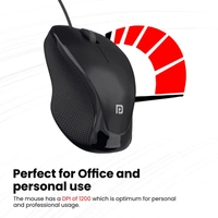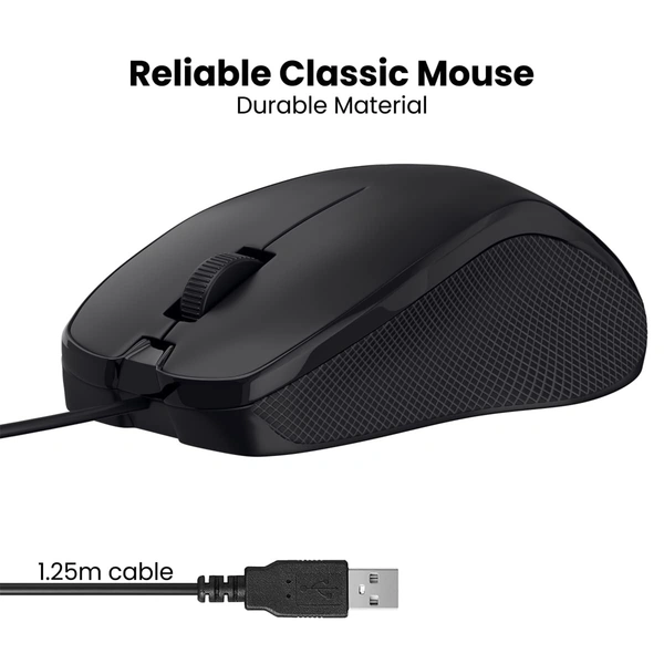 Portronics Toad 101 Wired Optical Mouse with 1200 DPI, Plug & Play, Hi-Optical Tracking, 1.25M Cable Length, 30 Million Click Life(Black)