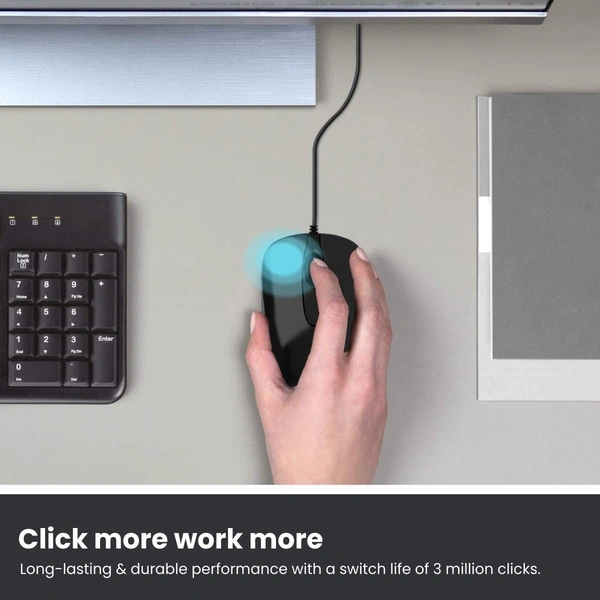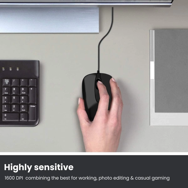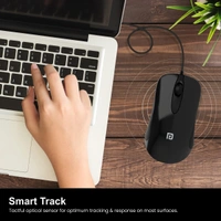 Portronics TOAD 26 Wired Optical Mouse with 1500 DPI, Optical Orientation, Click Wheel, 1.35M Cable Length (Black)