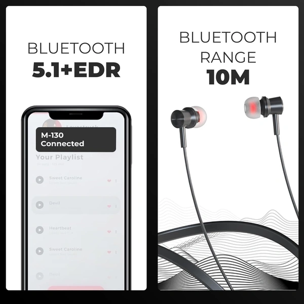 RD M-142 Bluetooth Wireless in Ear Neckband 10mm Drivers, Low Latency with Bluetooth v.5.1 EDR Chip for Gaming, 24 Hours Play Time, Type-C Fast Charging, 300 Hours Standby (BLACK)