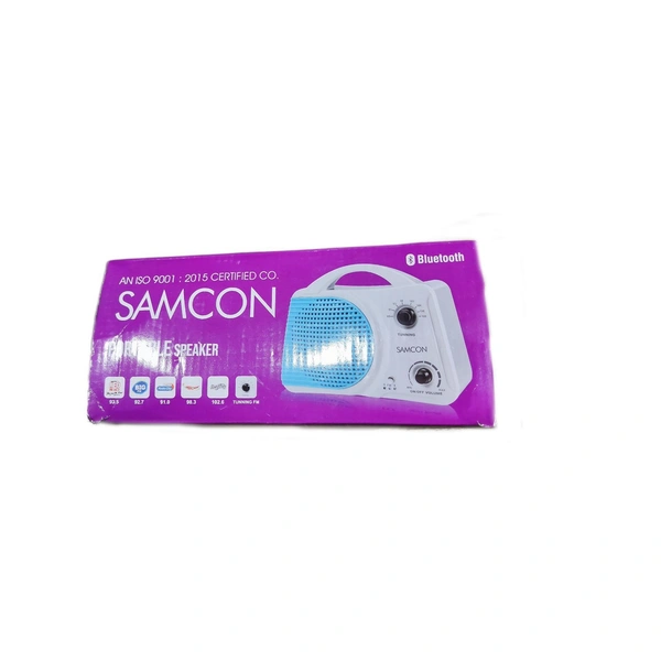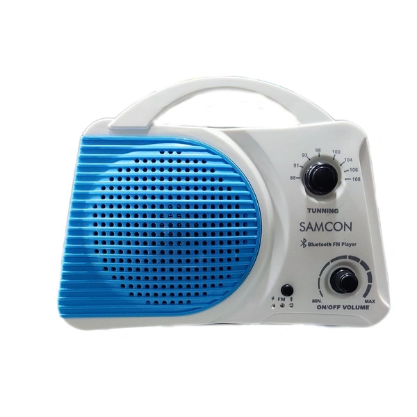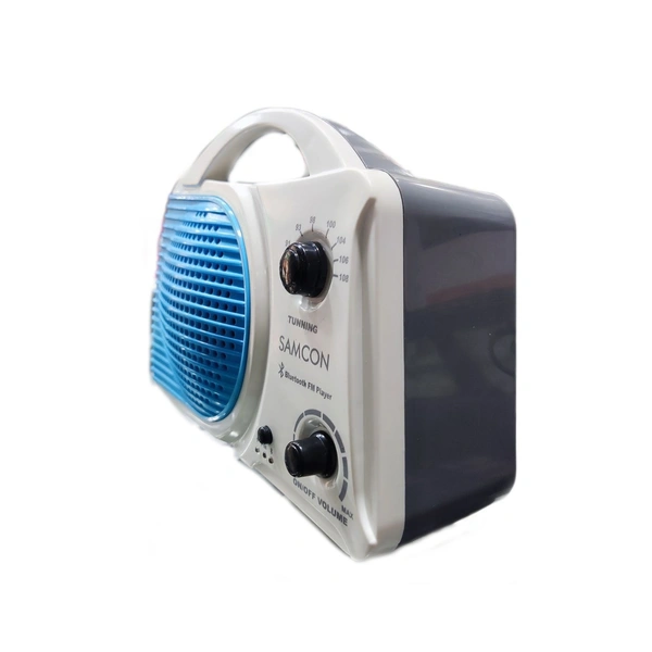 Samcon Get & Go Poratable Speaker FM Radio | Bluetooth | In Built Rechargeable Battery 1 AMP 4V ( White & Blue)