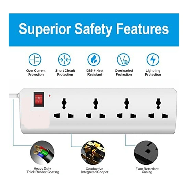 Shreyam SE-178 4 Way Extension | Switch With Indicator | 5 Meter Length (White)