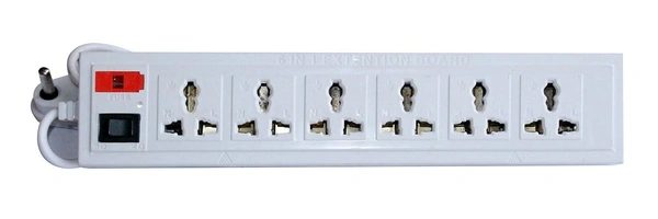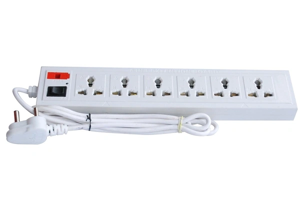 Shreyam SE-244 6 Way Extension | Switch With Indicator | 1.5 Length (White)