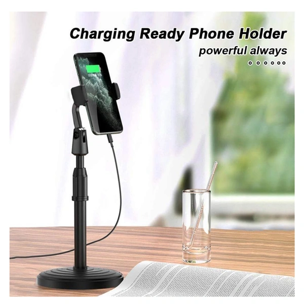 Universal Mobile Stand for Table with Adjustable Height | 360 Degree Rotation Mobile Holder for Table & Bed Compatible with All Smartphones (Black)