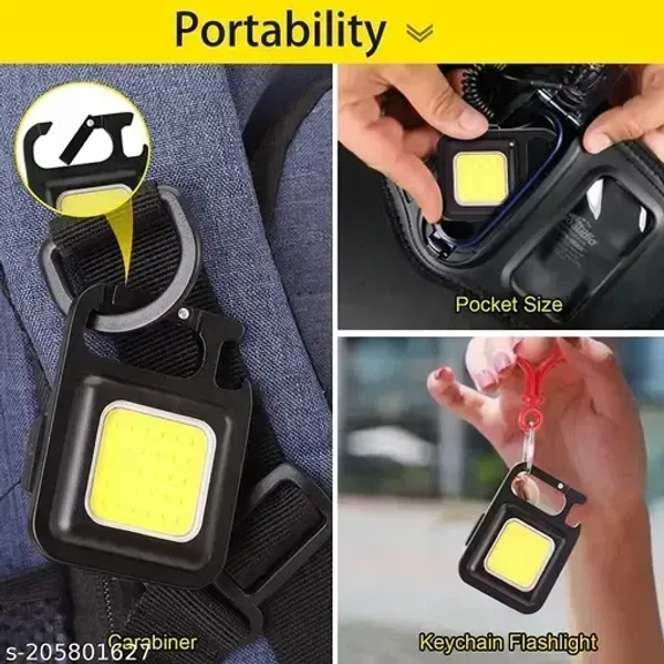 VEV COB Rechargeable Key Chain Light Mini Flashlight Led Light With Bottle Opener Multipurpose (Black)
