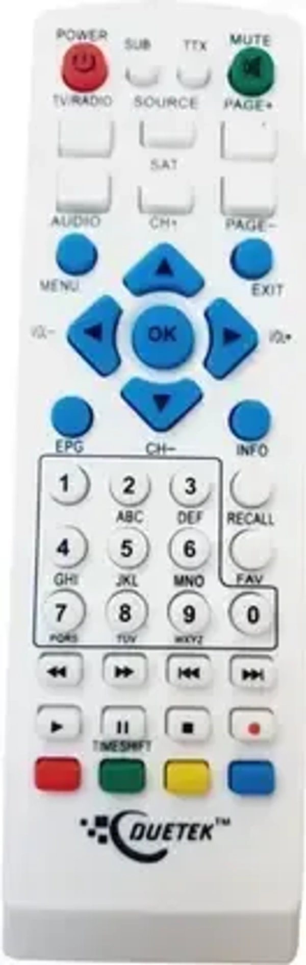 - Compatible Devices : Duetek A6 Free to Air Set Top Box Remote