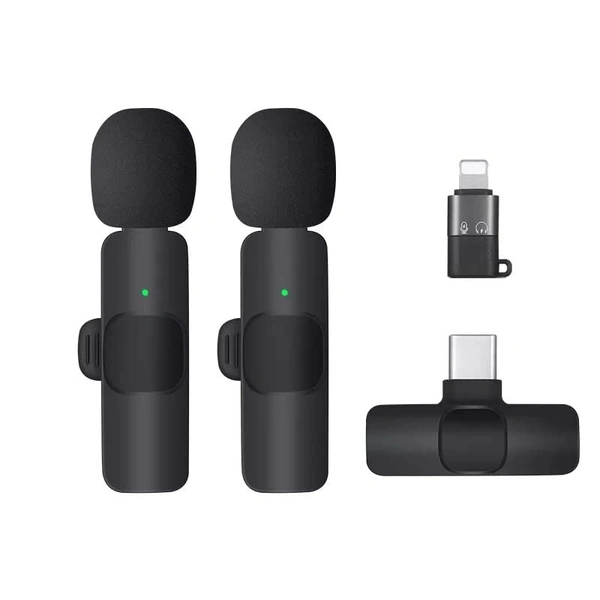 VEV K9 Dual Wireless Lavalier Microphone Plug and Play, No Need APP & Bluetooth Collar Mic for All iPhone, iPad, Mac Devices for YouTube, Live Stream & Video Recording (Black)
