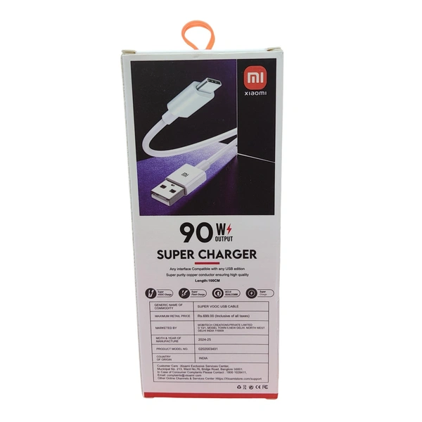 VEV mi Xiaomi Data Cable Fast Charging | Type-C | 90W Output | Super Charger (White)