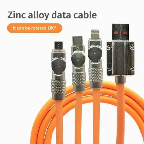 VEV Mobile Phone Type C Micro USB 180 Degree Rotating Multi USB Charger Adapter Cable Kit 3in1 Fast Charging Cable (Orange)