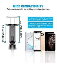 - 【360° Rotation+ 220° Angle adjustable】220°rotation clamp with adjustable knob + 360°rotatable phone holder. You could rotate and select horizontal or vertical camera mode to get the best angle photos when taking selfies.
