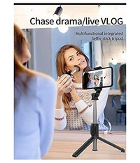 - 【 Wireless Selfie Stick & Phone Tripod 】 -- Selfie stick tripod with built-in wireless remote controller (up to 10 meters wireless connection). And you can use it as a tripod, watch a movie or take a video.