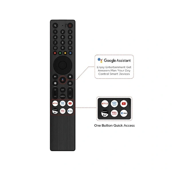 - With Netflix, Primevideo, YouTube, SonyLiv, TCL Channel, Web Search Function
