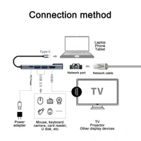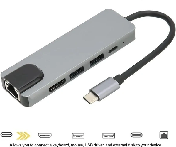 VEV Type-C to HDTV 5 in 1 Lan + Type-C + USB3.0 + USB2.0 + HDTV Connect Your USB-C Computer to An HDTV-Equipped Display (BLACK)